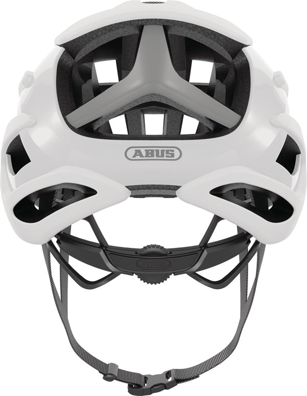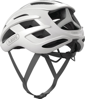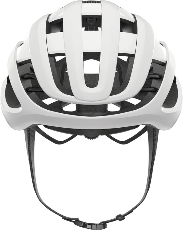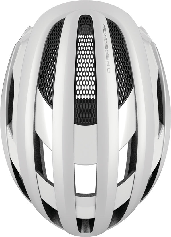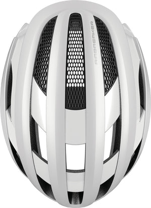 Abus Airbreaker Polar White Matt. Abus har nyudviklet en racerhjelm i samarbejde med Team Movistar. Det er blevet til et unikt design til den krævende landevejsrytter. Der er lagt fokus på ventilation/afkøling og aerodynamik. Multi Speed design tilbyder ventilation som ryttere ønsker det: maksimal ventilation på langsommere kuperede ruter og optimal aerodynamik i hurtigt fladt terræn. Zoom Ace skruespænde i nakken for individuel tilpasning.