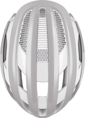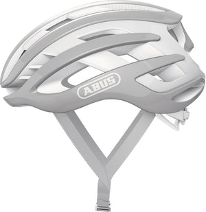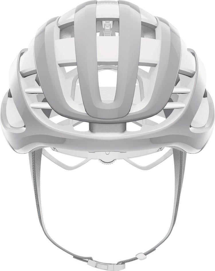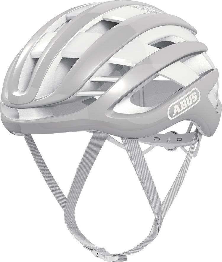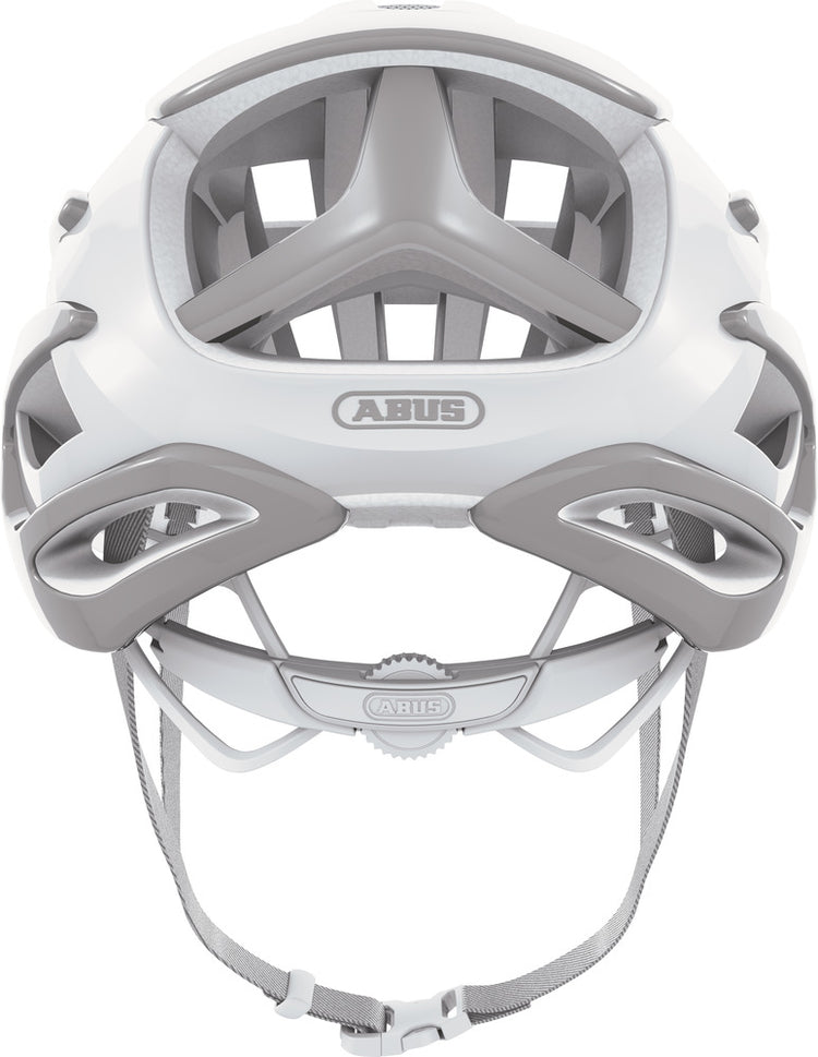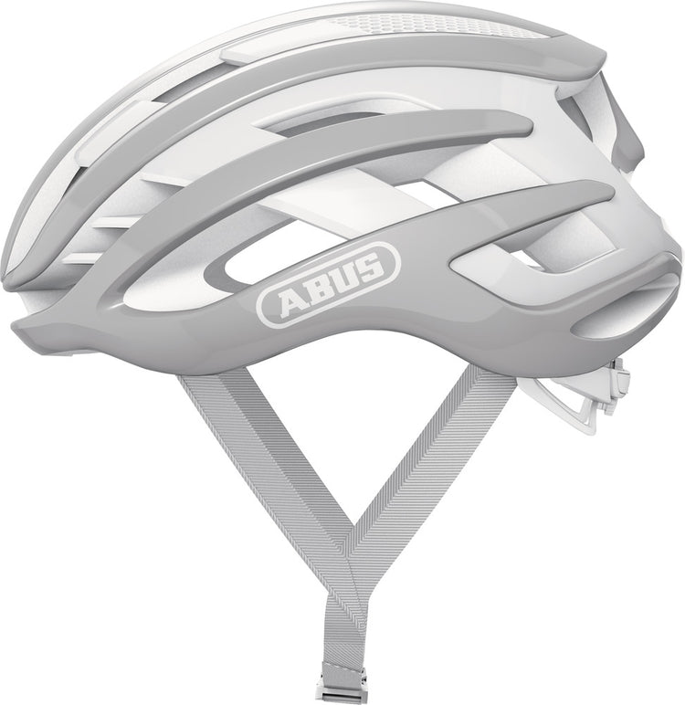 Abus Airbreaker Pure Grey. Abus har udviklet en klassisk top racerhjelm i farven helt hvid. Alt er stort set hvidt på nær stropperne som er grå. Det er blevet til et unikt design til den krævende landevejsrytter. Der er lagt fokus på ventilation/afkøling og aerodynamik. Multi Speed design tilbyder ventilation som ryttere ønsker det: maksimal ventilation på langsommere kuperede ruter og optimal aerodynamik i hurtigt fladt terræn. Zoom Ace skruespænde i nakken for individuel tilpasning.