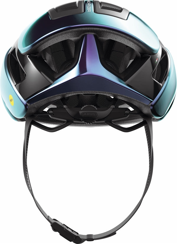 Abus GameChanger 2.0 FlipFlop Purple Mips er det ultimative valg for ambitiøse cyklister og triatleter, der ønsker at forbedre deres præstation. Optimerede aerodynamiske design med en bredere profil og tilpasset form giver en afgørende aerodynamisk fordel, især ved de nuværende racehastigheder. Den øvre ventilation, med Airboost frontindgangen og de nye EYEBROW åbninger foran, giver forbedret luftcirkulation og effektiv køling. Komforten er sikret takket være FLOW STRAPS PRO-stropperne og ZOOM PRO skruespænde-system, der tilbyder en præcis pasform og optimal stabilitet. Sikkerheden har høj prioritet med integrationen af MIPS AIR NODE samt kompatibilitet med QUIN Crash Detection-teknologi for ekstra tryghed under soloture. Med sin lette vægt og enestående funktionalitet vil denne Aerohjelm imødekomme kravene fra landevejscyklister, der foretrækker aerodynamik.