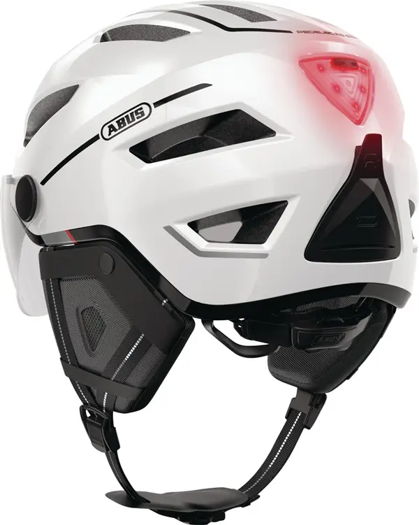 Abus pedelec 2.0 ACE Pearl White er NTA 8776 godkendt. Ekstrem flot storby cykelhjelm med super pasform og forbedret sikkerhed. Du får klart visir (du kan tilkøbe røgfarvet), aftagelige ørevarmere og integreret regnovertræk som er monteret i hjelmen bagpå i et lukket rum. Du får højt placeret USB genopladelig sikkerhedslygte bagpå samt insektnet foran og Fidlock magnetspænde. Hjelmen tilpasses med Abus Zoom Ace spændesystem. Der er også aftagelige ørevarmere med.