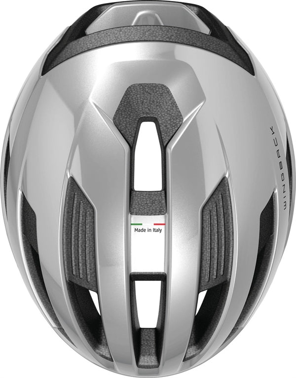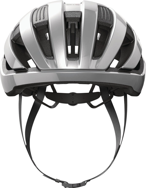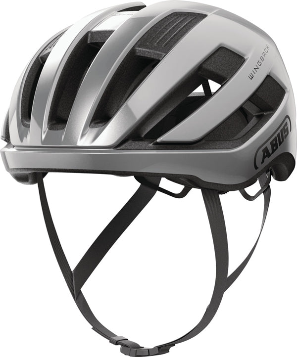 Abus Wingback Gleam Silver. Lækker allround cykelhjelm fra ABUS. Du får en fed sporthjelm til landevejen i lækkert design med Zoom Ace nakkejustering og masser af ventilation. 17 luftkanaler sørger for konstant afkøling. Hestehale kompatibel og FlowStraps rem som er aerodynamisk og hudvenlig, flagrer ikke