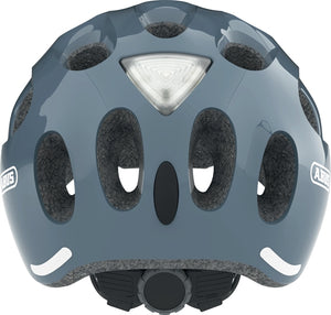 Abus Youn-I Ace Glacier Blue. Sikkerhed, funktionalitet og design går op i en højere enhed. Højt placeret nakke-lys med 180 graders synlighed. 17 store luftkanaler sikrer optimal ventilation. Insektnet foran sikrer at du undgår hvepse og bier i hjelmen. Drejespænde og indbygget LED sikkerhedslygte bag på hjelmen.