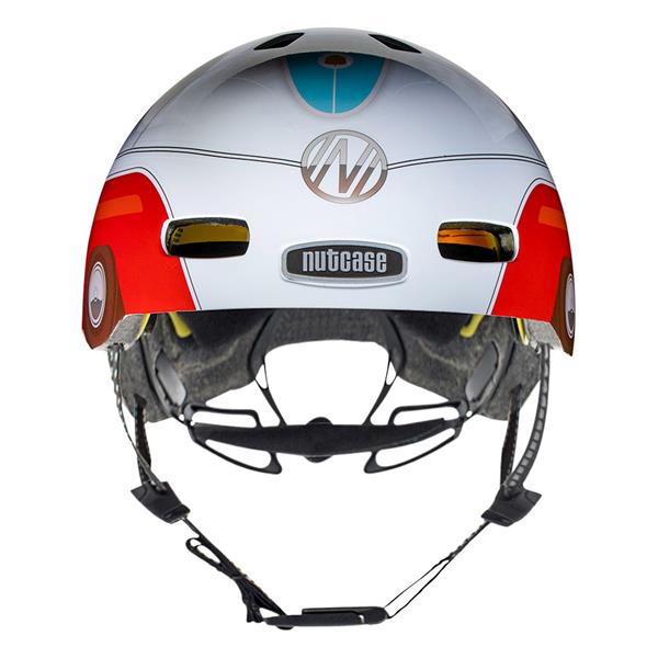 Nutcase Little Nutty Surfs Up Mips. Børne cykelhjelm med surfer motiv fra Nutcase Den nye børne cykelhjelm / skaterhjelm fra Nutcase. Størrelsen på hjelmen justeres med et drejespænde i nakken. Hjelmen har også fået magnetspænde ved hagen for at undgå klemmeskader - Med denne hjelm er du sikker på at være godt beskyttet, og samtidig have en hjelm der ikke ligner alle de andre. Hjelmen fås i 2 størrelser