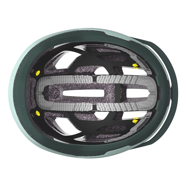 Scott Arx Plus Mineral Green med endnu mere sikkerhed i form af MIPS og så med aftagelig skygge foran. Scott Arx Plus er en lækker all-round sportshjelm til voksne og børn. Perfekt til MTB og almindelig brug. Du får en let hjelm i bedste kvalitet med drejespænde i nakken. Hjelmen beskytter ekstra godt og afkøler hovedet selv under varme forhold. Scott Arx Plus er skabt med erfaring fra top cykelryttere som en allround cykelhjelm. Scott Arx cykelhjelm har Micor Rotary Adjustment System II for optimal komfort, justering og stabilitet.