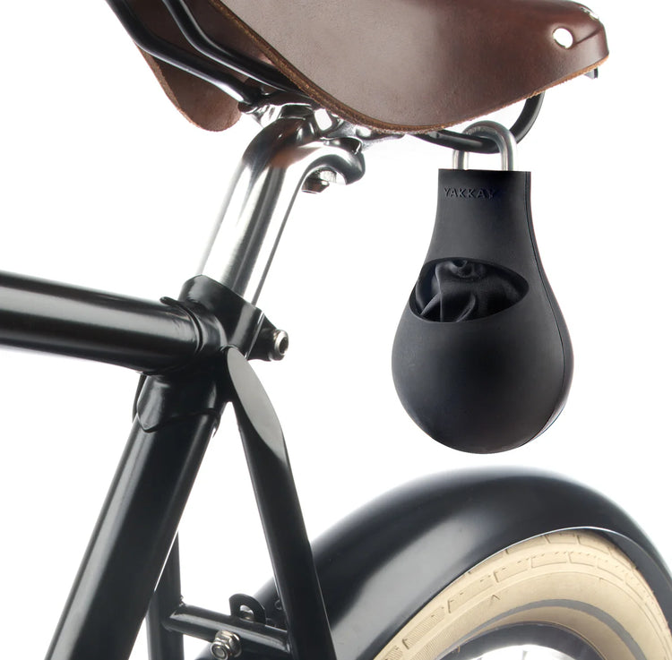 Yakkay Safe One Hjelmlås Med Regnovertræk. SAFE ONE fra YAKKAY er skabt til at passe på din cykelhjelm. Med SAFE ONE kan du nemt pakke hjelmen ned i en stilfuld beskyttelsespose og samtidig låse den sikkert fast til din cykel. Produktet kombinerer funktionalitet med moderigtigt dansk design. Køb det her på Cykelhjelm.dk