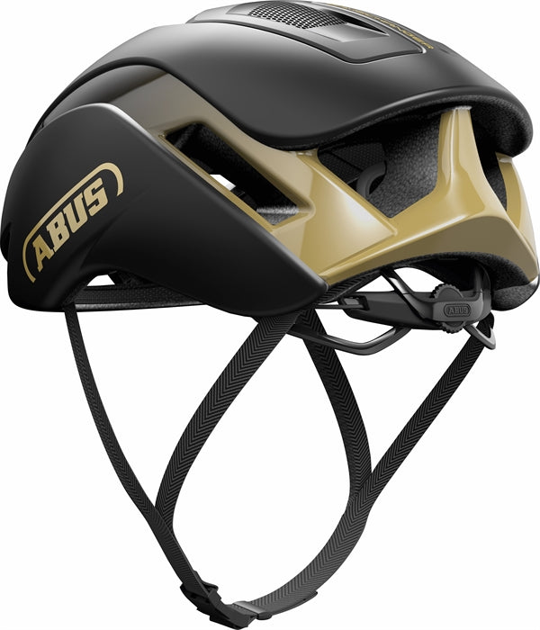 Abus GameChanger 2.0 Black Gold ist die ultimative Wahl für ambitionierte Radfahrer und Triathleten, die ihre Leistung verbessern möchten. Das optimierte aerodynamische Design mit einem breiteren Profil und individueller Form bietet einen entscheidenden aerodynamischen Vorteil, insbesondere bei den aktuellen Renngeschwindigkeiten. Die obere Belüftung mit dem Airboost-Fronteingang und den neuen EYEBROW-Öffnungen vorne sorgt für verbesserte Luftzirkulation und effiziente Kühlung. Der Komfort ist durch die FLOW STRAPS PRO Gurte und das ZOOM PRO Schnallensystem gewährleistet, das eine präzise Passform und optimale Stabilität bietet. Die Sicherheit hat höchste Priorität durch die Kompatibilität mit der QUIN Crash Detection-Technologie für zusätzliche Sicherheit auf Solofahrten. Mit seinem geringen Gewicht und außergewöhnlicher Funktionalität erfüllt dieser Aerohelm die Anforderungen von Straßenradfahrern, die Aerodynamik bevorzugen.