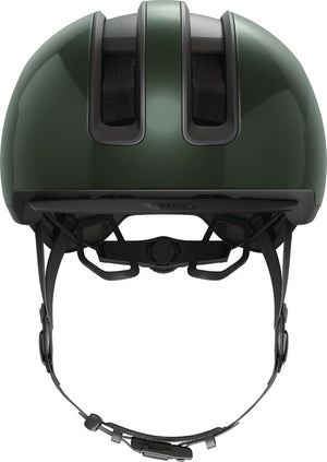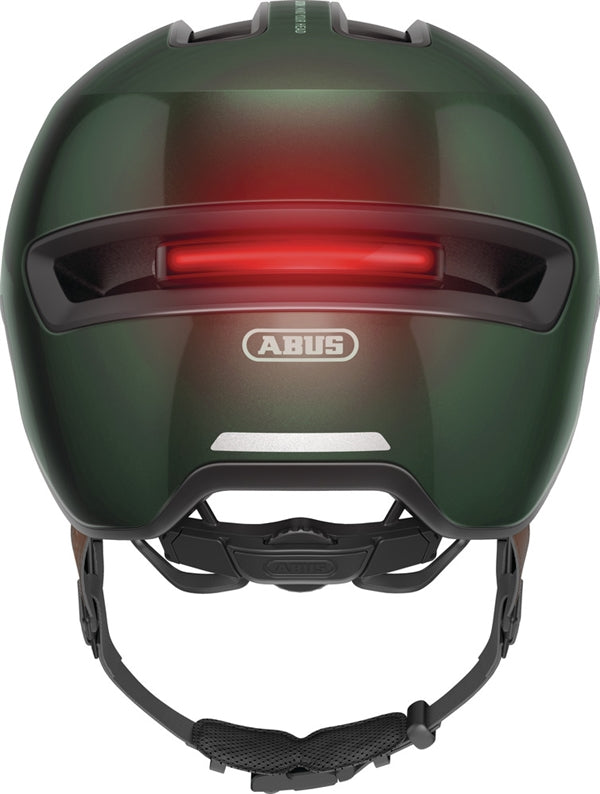 Der futuristische neue Abus Hud-Y Moss Green ist der perfekte Begleiter in der City. Man nehme den tiefen Sitz moderner Mountainbike-Helme, die Kopfform des Abus GameChanger-Rennradhelms und füge für die Straße eine Dosis Sci-Fi-Styling hinzu. Nun noch die wiederaufladbare, magnetisch befestigte Heck-LED und voilà - der moderne Helm für die Stadt ist da. Am Hinterkopf befindet sich ein magnetischer USB-Lichtstreifen, der über vier verschiedene Licht-Modi verfügt. Die Leuchtdauer richtet sich danach, ob der Power Mode, Eco Mode, Blink Mode oder Pulse Mode aktiv ist. Sonnenblende in Form eines kleinen Schirms. Einen magnetischen Fidlock Verschluss und Zoom Ace Urban Fit-System, die Möglichkeit Platz für das Tragen eines Zopfes zu schaffen. Der Fahrradhelm Abus Hud-Y ist mehr als ein Kopfschutz.