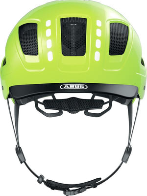 Der ABUS Hyban 2.0 Led Signal Yellow ist der perfekte Alltagshelm für die Stadt. Vereint das Beste aus zwei Fahrradhelm-Technologien: Die gute Belüftung der In-Mold-Technologie mit der Robustheit eines ABS-Hartschalen-/Skate-Helms. Vorder- und Rücklicht für 360° Sichtbarkeit, 3 Leuchtmodi: Eco Mode 16 Stunden, Eco Flash Mode (blinkend) 16 Stunden und Power Flash Mode (blinkend) 6 Stunden, LED-Licht über Micro-USB schnell aufladbar 2 Stunden (Kabel nicht enthalten). Zoom Ace Urban Verstellsystem mit griffigem Verstellrad für individuellen Sitz.