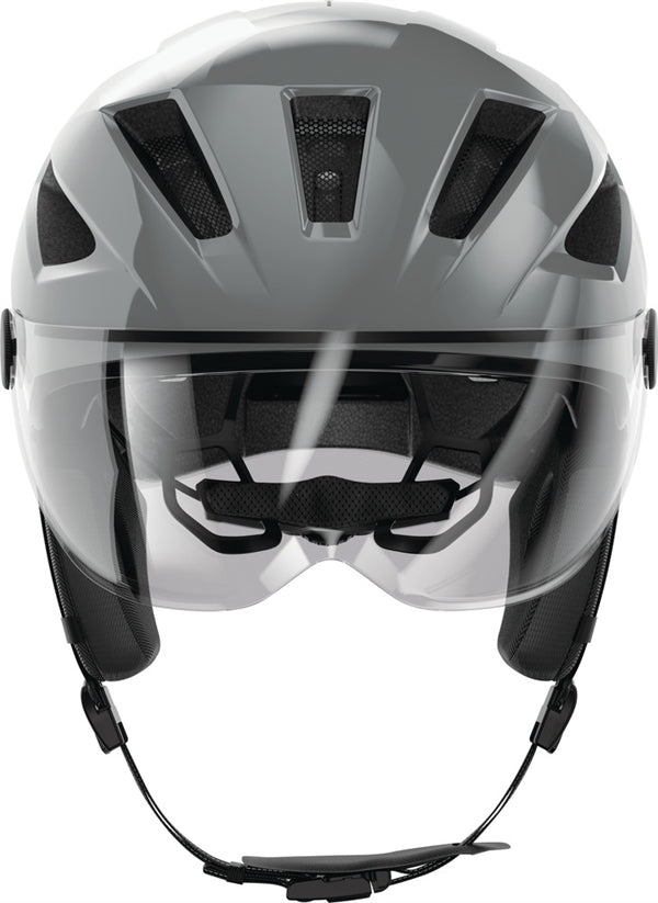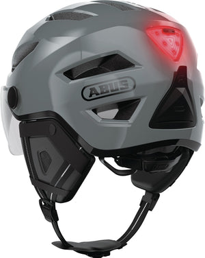 Abus pedelec 2.0 ACE Race Grey ist ein sehr modischer Fahrradhelm mit austauschbare Visier im Citylook. Tollen Passform. Am Hinterkopf befindet sich eine USB aufladbares Sicherheitslampe und integriertes Regenhaube. Aufsteckbaren Ohrenschützer. Abus pedelec ist mit NTA 8776 Zertifizierung, einem neuen Sicherheitsstandard, der speziell für Fahrer von Speed-Pedelecs entwickelt wurde.