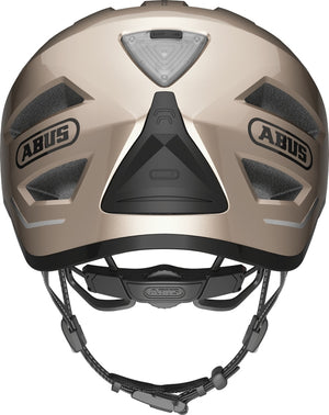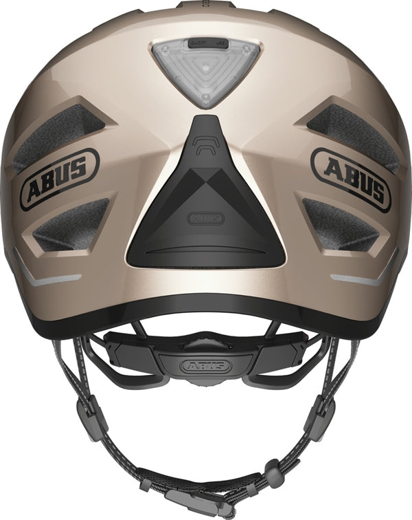Abus pedelec 2.0 Champagne Gold ist ein sehr modischer Fahrradhelm im Citylook. Tollen Passform. Am Hinterkopf befindet sich eine USB aufladbares Sicherheitslampe und integriertes Regenhaube. Abus pedelec ist mit NTA 8776 Zertifizierung, einem neuen Sicherheitsstandard, der speziell für Fahrer von Speed-Pedelecs entwickelt wurde.