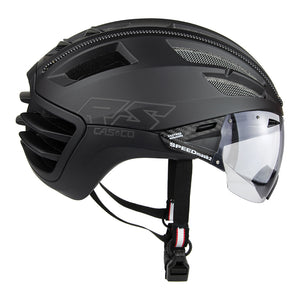 Der Casco Speedairo 2 RS Vautron Visor Shadow Racer ist ein unglaublich toller Triathlonhelm und ein Helm für Radrennen. Der Helm überzeugt durch ein kompromissloses Design, bei dem auf Aerodynamik und eine optimale Kühlung Wert gelegt wurde. Einen cooleren Helm findet man kaum, und man kann einige Sekunden einsparen. Der Helm ist innen mit einem Netz ausgestattet, wodurch sich die Luft besser verteilen kann, wenn Sie auf dem Fahrrad Bestleistung zeigen. Der Helm hat ein großes Visier, das einen hervorragenden Schutz bietet und komfortabel wirkt. Es kann hochgeschoben werden. Vautron-Visier (Photochromatisch) Schnelle automatische Anpassung an wechselnde Lichtverhältnisse.