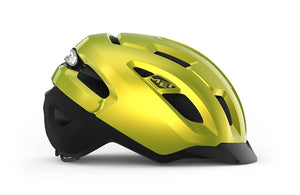 Met Urbex Mips Lime Yellow Metallic. Das moderne und minimale Design ist inspiriert von einer neuen Generation von Radfahrern, die die urbane Mobilität verändern. Am Hinterkopf befindet sich ein magnetischer USB-Lichtstreifen, der über fünf verschiedene Licht-Modi verfügt. Der Met Urbex Mips wird durch die NTA 8776 Zertifizierung sicherer und ist umfangreich mit Funktionen ausgestattet, die Komfort, Sichtbarkeit und Benutzerfreundlichkeit gewährleisten. Einen magnetischen Fidlock Verschluss macht das Sichern des Helms einfach, während der gepolsterte Kinnriemen für ein sanfes Tragegefühl auf der Haut sorgt. Der Met Urbex Mips sitzt dank einer raffinierten Innenform und dem neuen MET Safe-T Heta-Fit-System, das eine Rundum-Einstellung und eine individuelle Passform bietet, außergewöhnlich bequem und sicher auf dem Kopf. Kurz gesagt: Der Urbex Mips ist einer der sichersten Helme, die es auf dem Markt gibt.