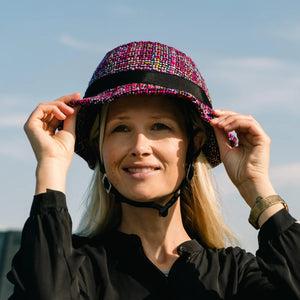 Die Montage erfolgt, indem das Hinterteil des Yakkay-Helms in das Cover gelegt wird, sodass der elastische Rand des Covers an der Kante des Yakkay-Helms liegt. Danach wird mit Fingerkraft gearbeitet: Halte das Cover mit den Fingern fest und drücke es mit den Daumen auf den Helm. Den elastischen Rand rundherum mit den Fingerspitzen hochziehen. Beim ersten Anbringen ist das Cover straff. Danach hat es sich angepasst und lässt sich leichter montieren, wenn du es wieder abnimmst.